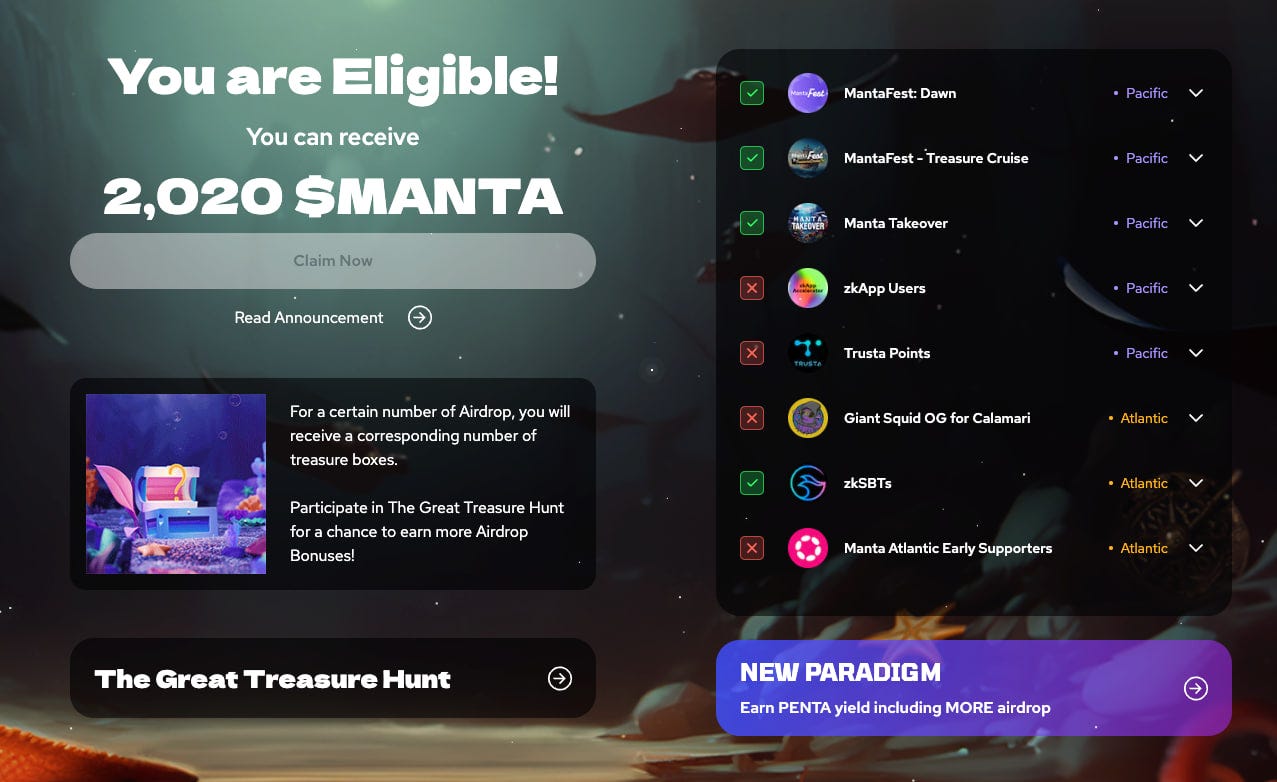 The grinding is finally paying off, as I qualified for the $ZKF, $MANTA, and $DYM airdrops.