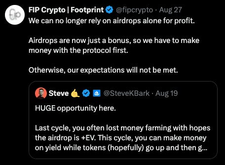 This will be a challenge, especially for me (since I’m a bad trader). But I’m forcing myself to see airdrops through this lens to not be over-reliant on them.
