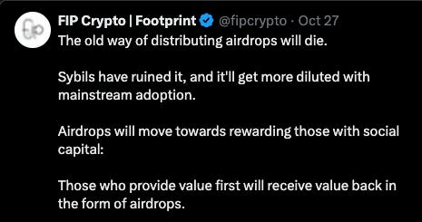 Build a reputation that consistently compounds and becomes a magnet that attracts airdrops naturally (instead of you having to actively chase them).