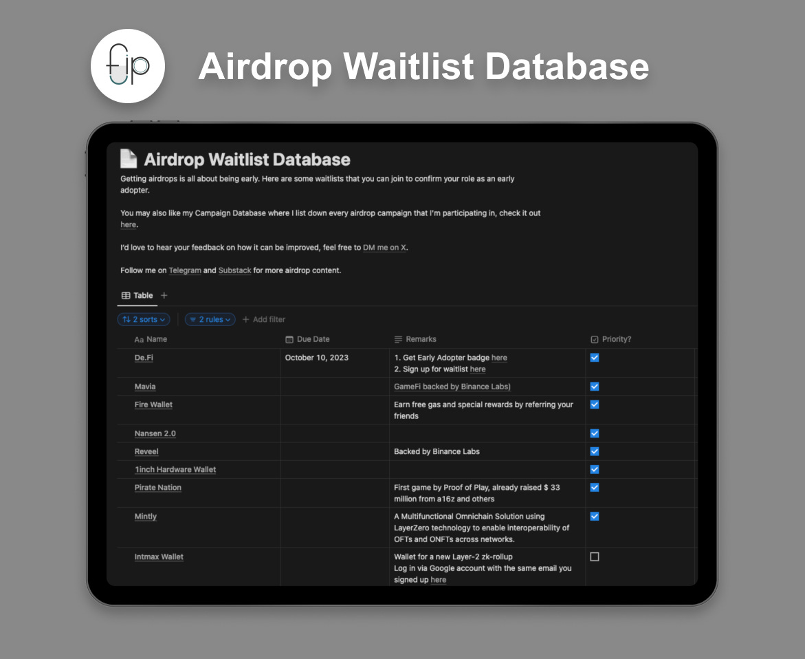 Getting airdrops is all about being early. Access my database of every waitlist I’ve registered for here.