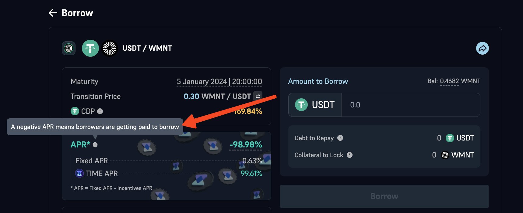 Timeswap is paying you to borrow funds from them in the TIME token which is not released yet.