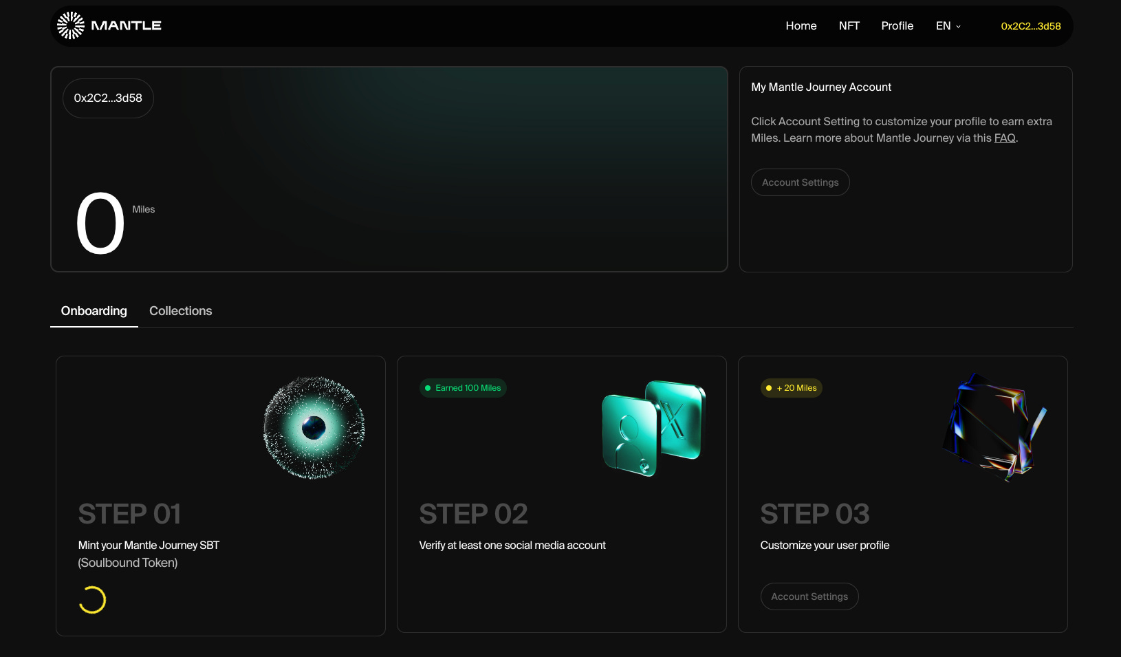 If you’re eligible, you can mint the Mantle Journey SBT to participate in a $500k airdrop. The site is quite laggy, and you may need to refresh it to mint the SBT.