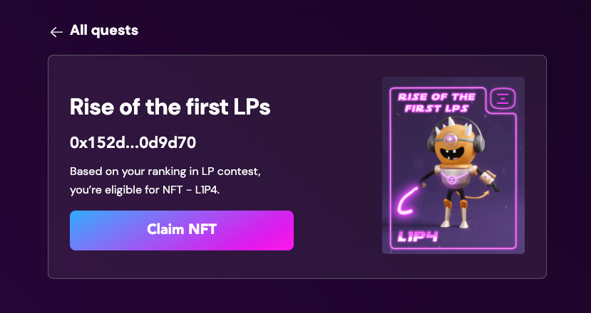 If you performed the task in my previous newsletter, you should be eligible to claim this NFT by JediSwap.