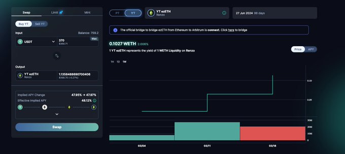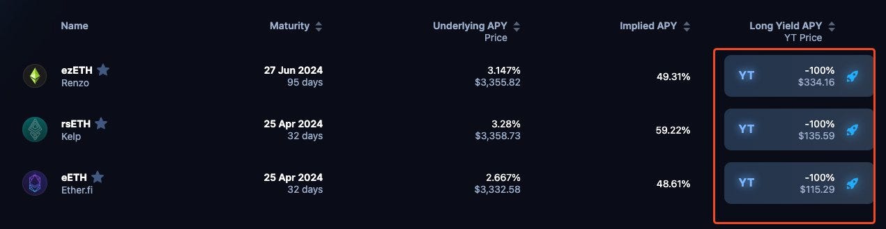 P.S. You can swap into the LRT YTs with any token, and not just ETH. But there may be some slippage involved.
