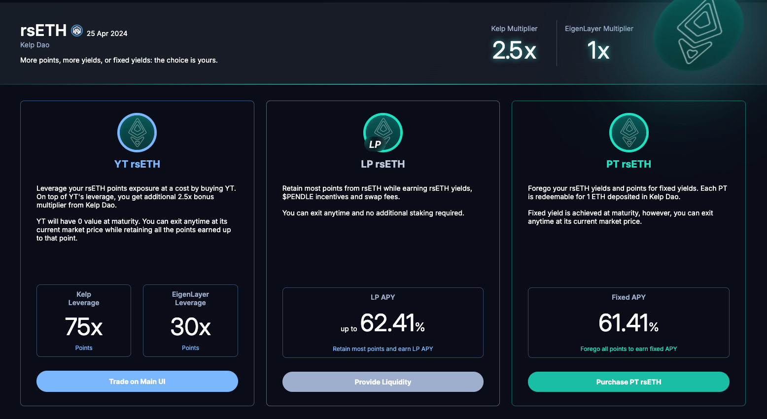 PT is the 'boring' play since we do not earn any EigenLayer or LRT points.
