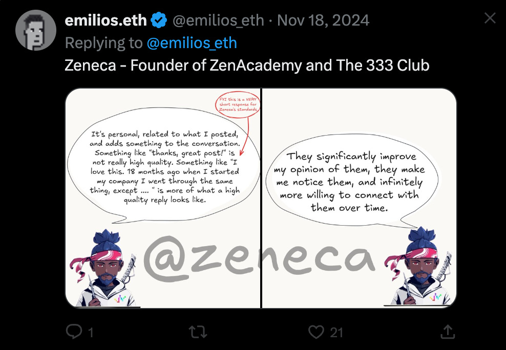 This all happens naturally when you’re adding meaningful takes to the conversation, instead of just saying generic things.