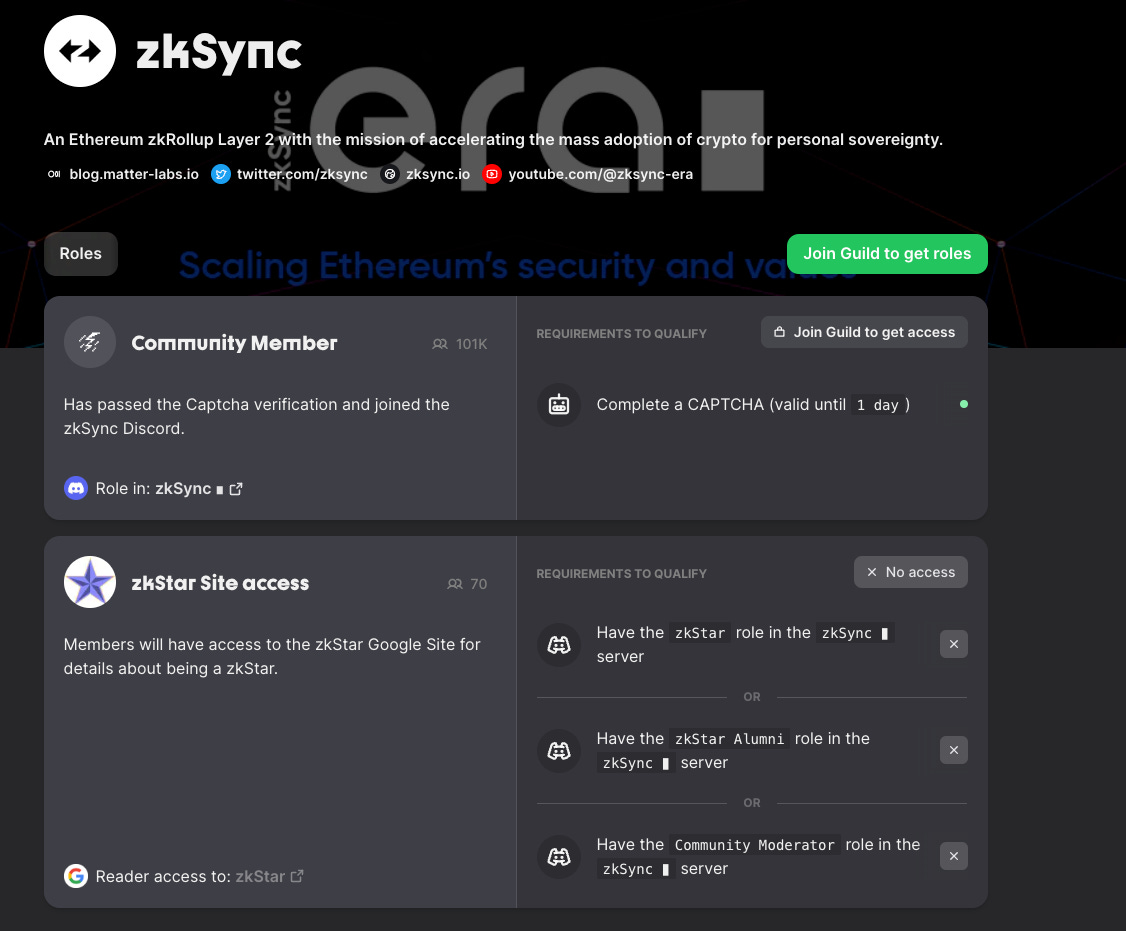 You can get a role for zkSync’s Guild by connecting your wallet here.