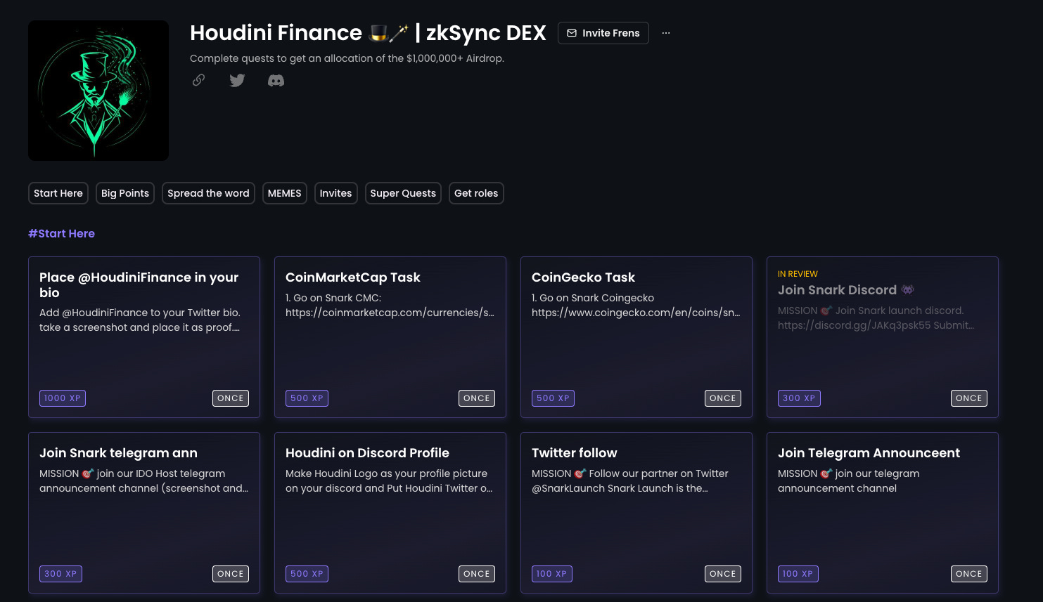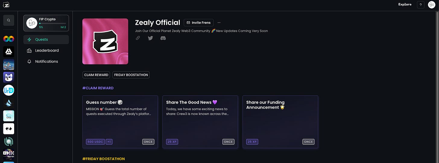 Zealy (previously known as Crew3) is a questboard that allows projects to create tasks for you to complete, earning you some XP.