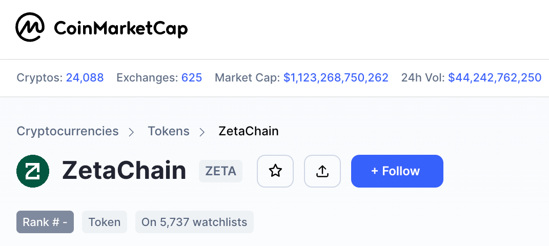 The ZETA token seems to be launching soon after it was listed on CoinMarketCap and CoinGecko.
