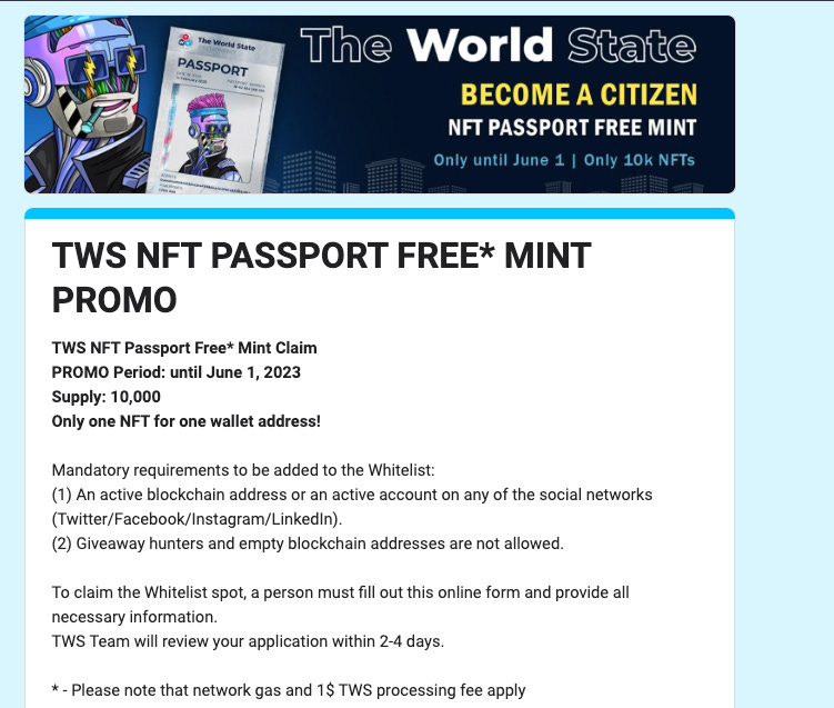 If you’ve previously registered for an Ethermail account, you can sign up for this whitelist to mint a free TWS NFT.