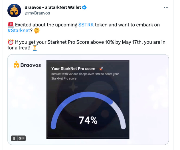 Braavos has a promotion too where they are awarding you an NFT if you have at least 10% in your StarkNET Pro Score.