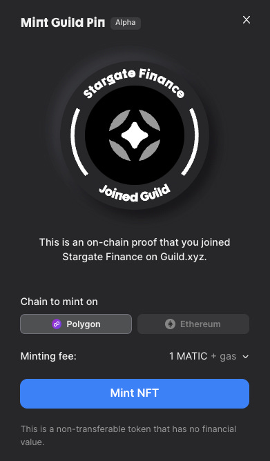 Similar to the ZetaChain, you can now mint a Guild Pin for Stargate after joining their Discord.