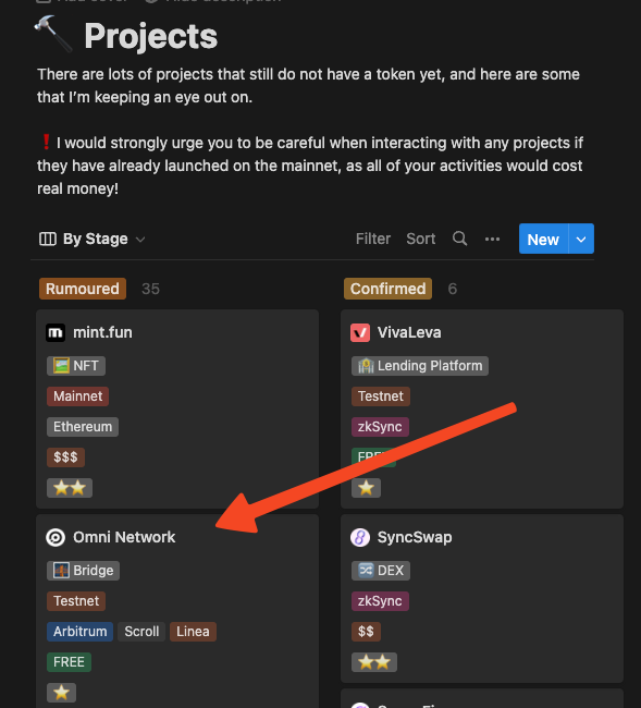 I’ve created a Notion site to keep track of all the airdrops that I’m looking to earn from, including both project and network tokens.