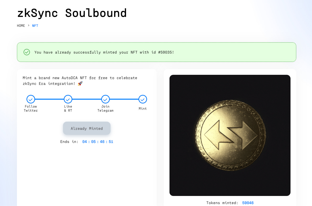 Moreover, there’s an AutoDCA NFT that you can mint after completing certain social tasks.