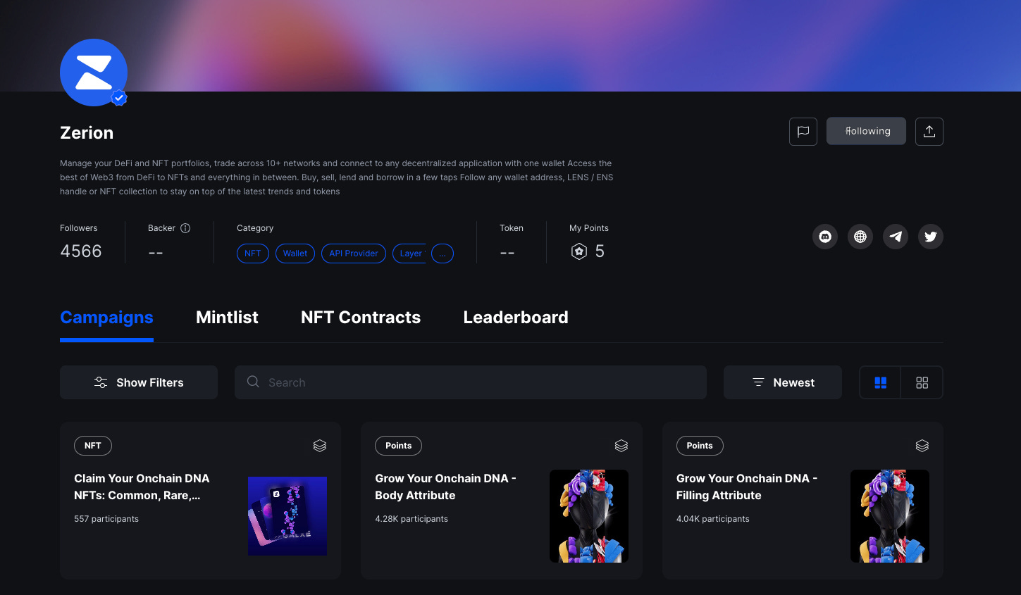 If you own a Zerion DNA NFT, you can claim some points in their new Galxe campaign.