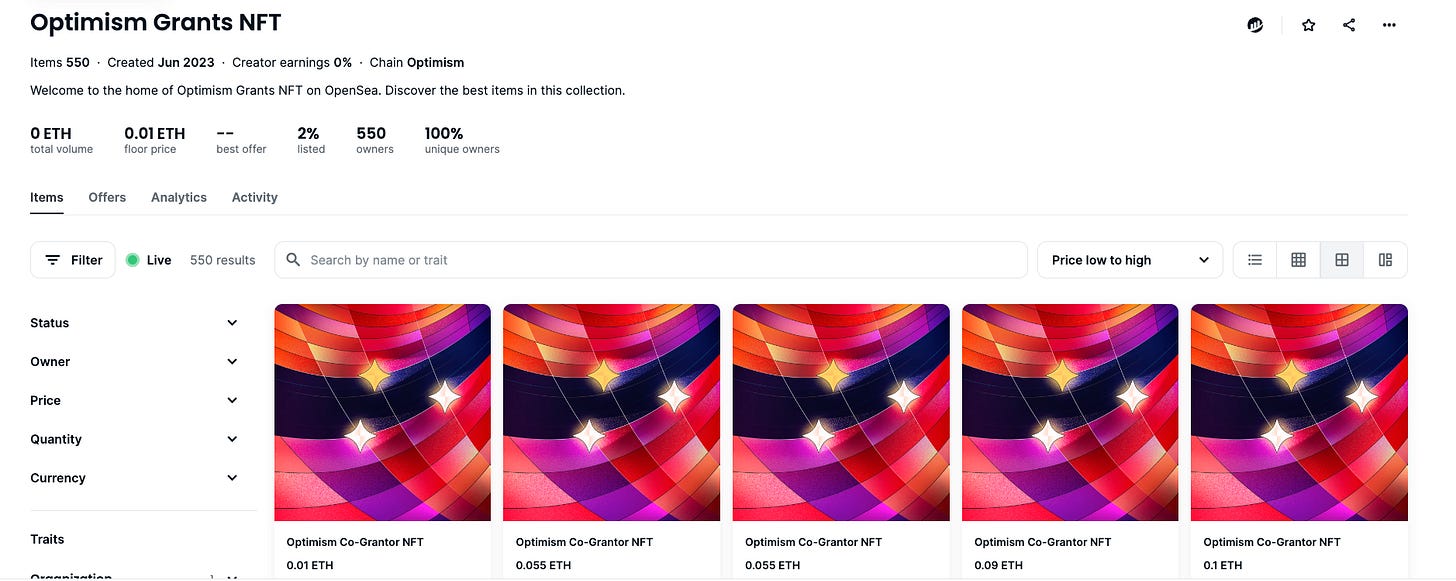 After this donation, you’ll be able to get an Optimistic Grants NFT sent to your wallet.