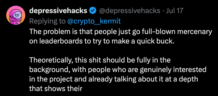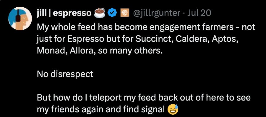 Why would anyone be active onchain if it pays more to spam posts about a project every day and earn $15k with a single airdrop?