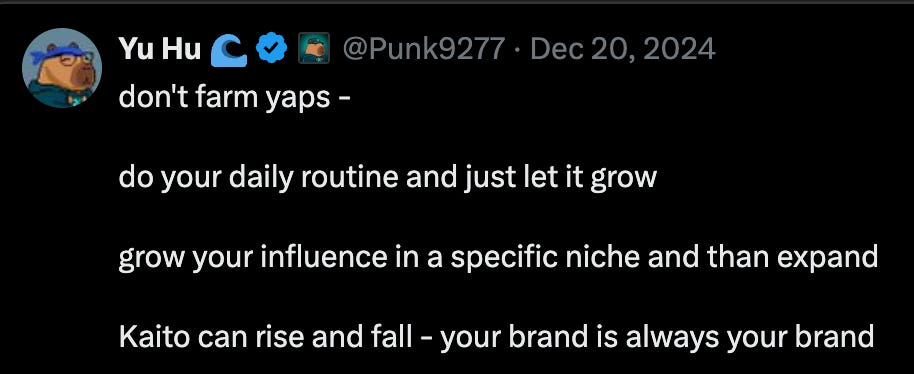 Our brand needs to be more than just about Kaito or Yapping, as they could be irrelevant in the future.
