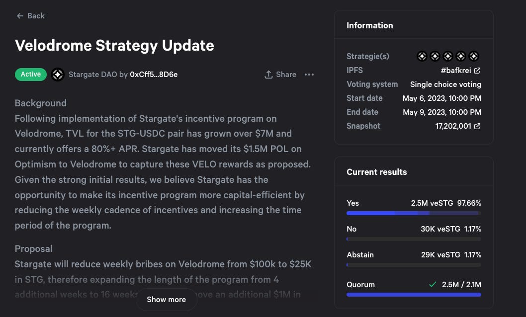 Stargate has just launched a new proposal, and if you’re farming for the LayerZero airdrop, it’s best for you to stake some STG and vote on this (completely free, no gas required).