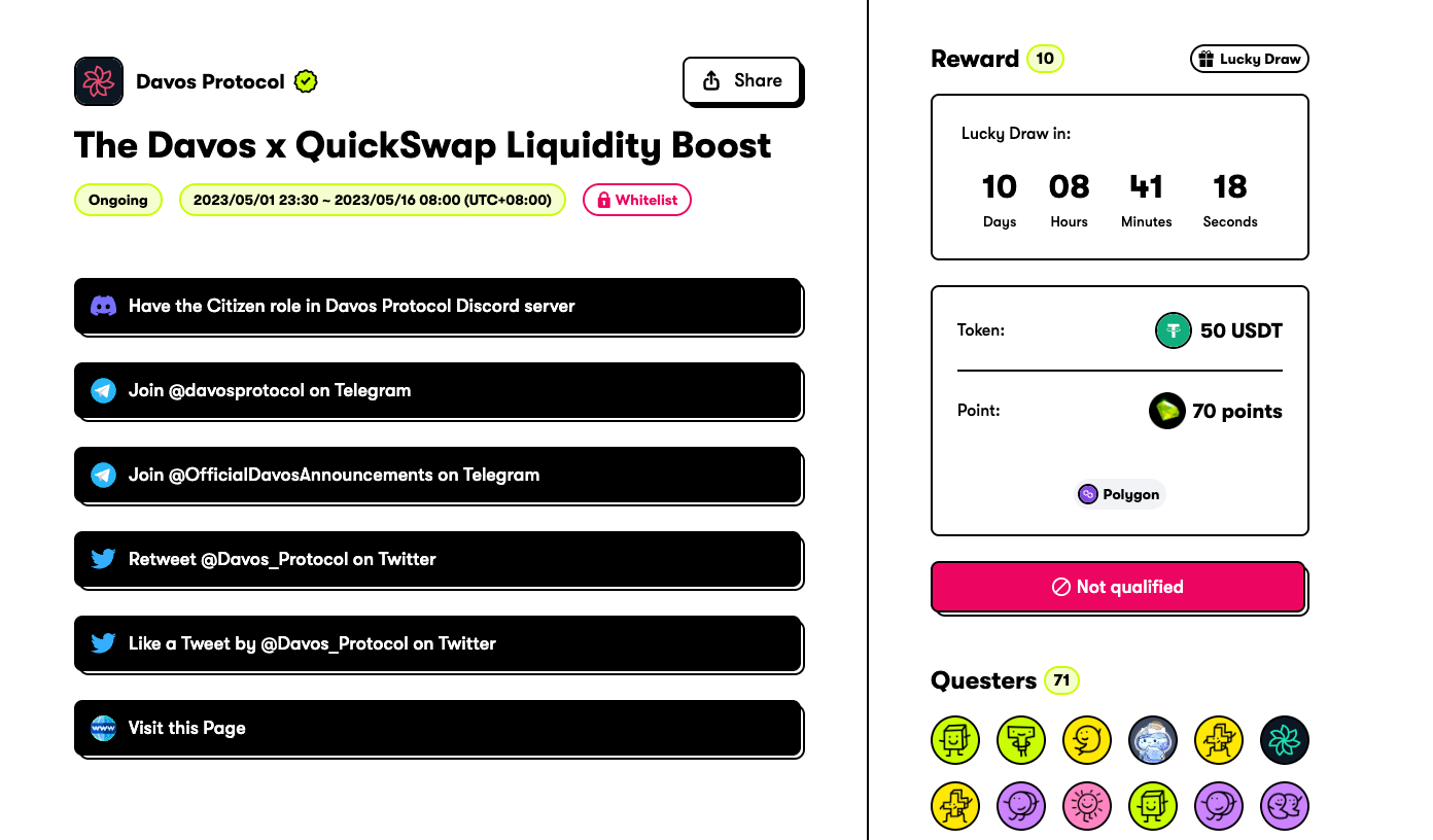 Davos is a protocol that is highly rumoured to perform an airdrop, and they have just launched a promotion until