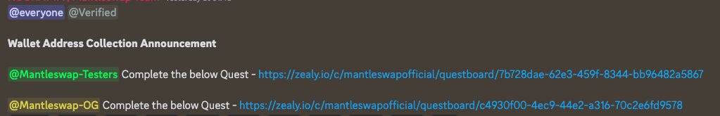 If you’ve been testing out MantleSwap, you can submit your address on Zealy.