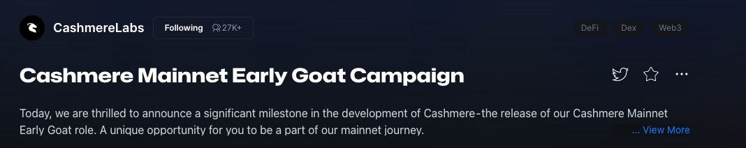Sign up for an account with my referral link, and then complete social tasks for Noobys Swap and Cashmere Labs CAPs.