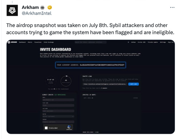 The key lesson from the Arkham Airdrop is DON’T BE LAZY. All you needed to do was to create an account with them before the snapshot date (8 July) and play around with the platform, and you would have qualified for the $ARKM airdrop.