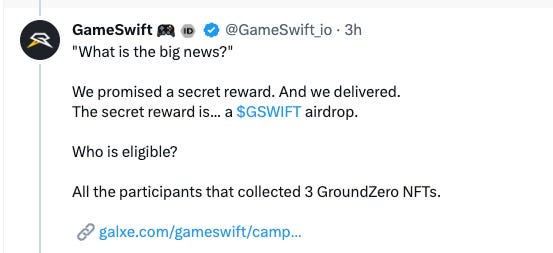 Another confirmed airdrop was Gameswift, something that I covered in my Mirror article back in April.
