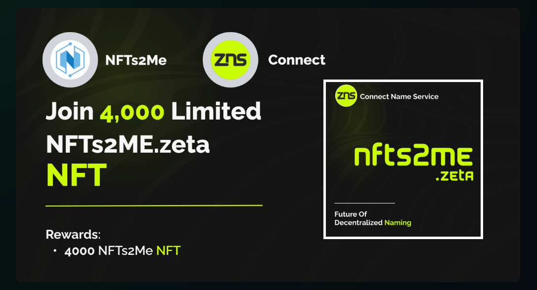 The first 4,000 submissions will receive an NFTs2Me.zeta NFT, which will serve as a token of your interaction with the ZetaChain testnet.