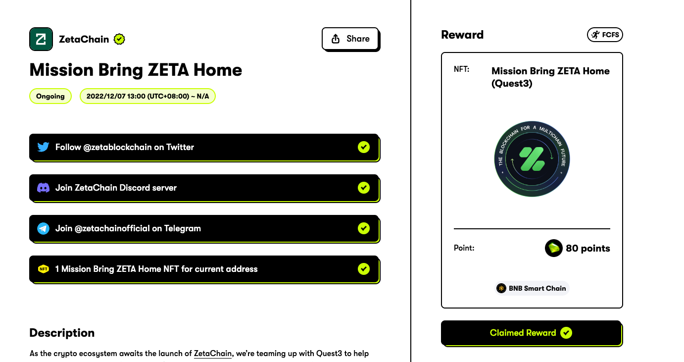 If you own any of the Bring ZETA Home Galxe NFTs, you can claim this quest.