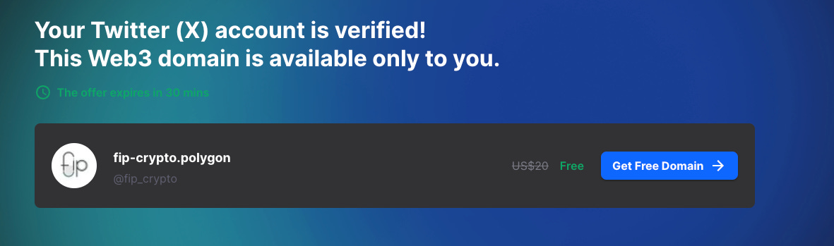 After connecting your Twitter account, you can claim a free .polygon domain.