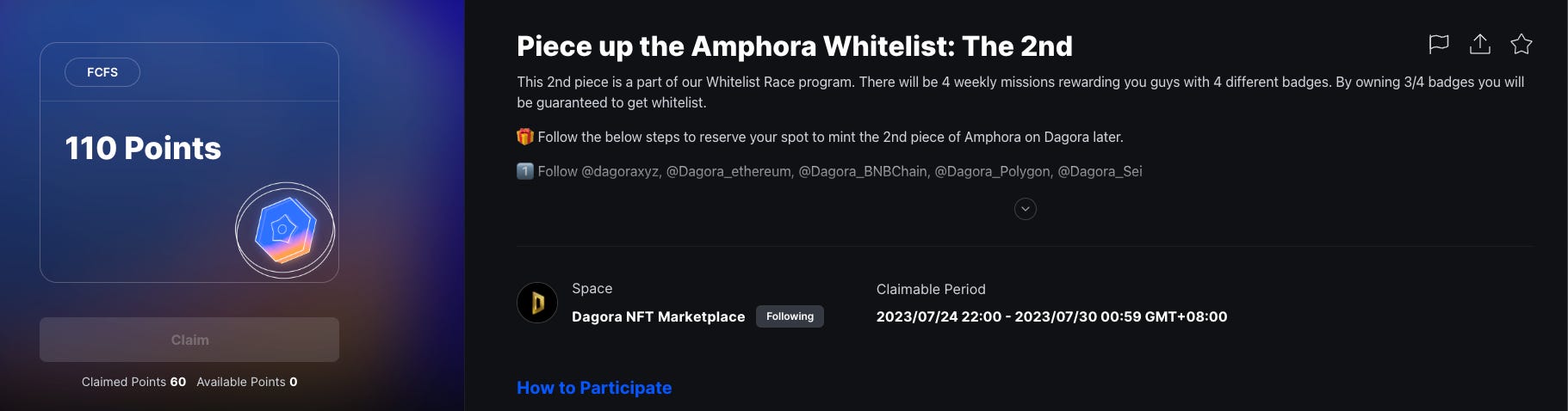 Complete social tasks to be eligible for the second piece, where you’ll need 3 out of 4 badges to get the whitelist.