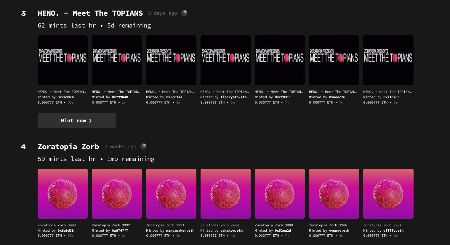 Each NFT mint will cost roughly $2, including both the Zora marketplace mint fee as well as the gas fee on the Zora network.