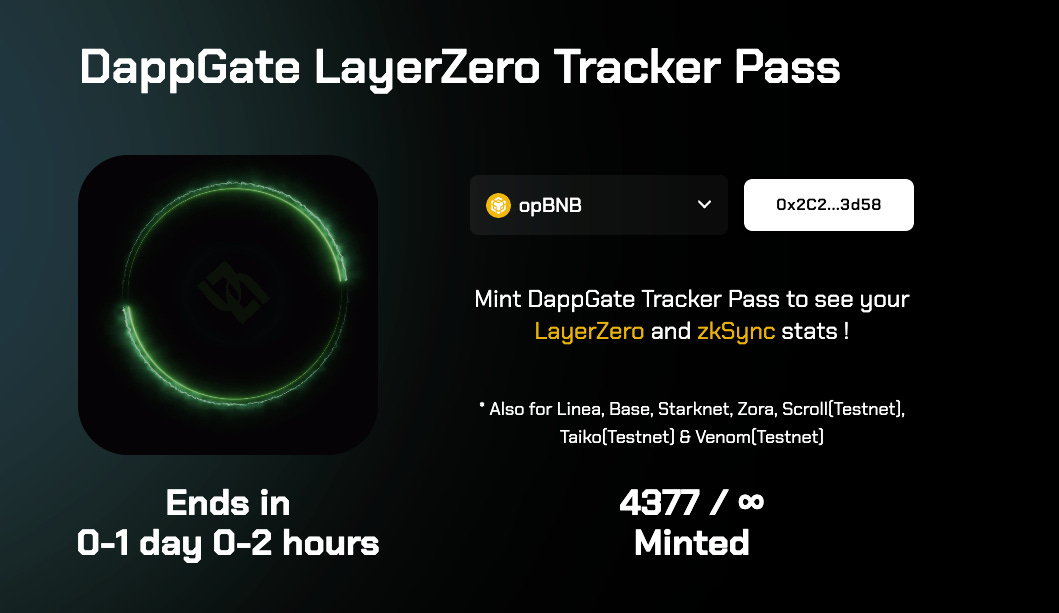 It’s possible to mint this tracker on the opBNB mainnet, and it costs around 0.01 BNB ($2 USD).