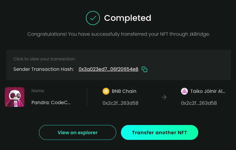 You can now bridge all 4 Pandra NFTs to the Taiko testnet, which will be cheaper compared to bridging your Pandras to a mainnet network.