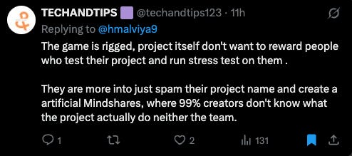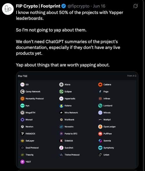 With InfoFi, everything becomes too inauthentic because no one dares to say anything bad about a project (for fear of losing their leaderboard rank).