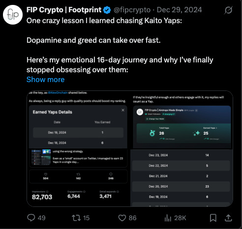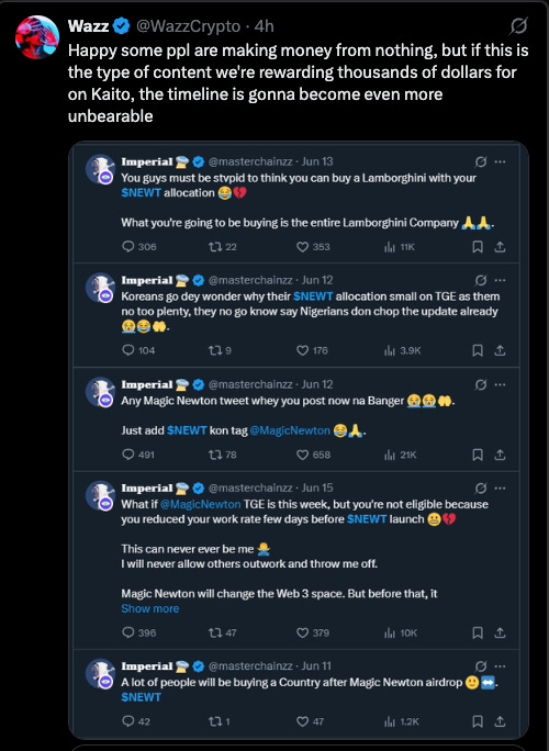 I’ve been guilty of this too in the early days of Kaito Yaps, where I constantly talked about Yaps because it was popular.