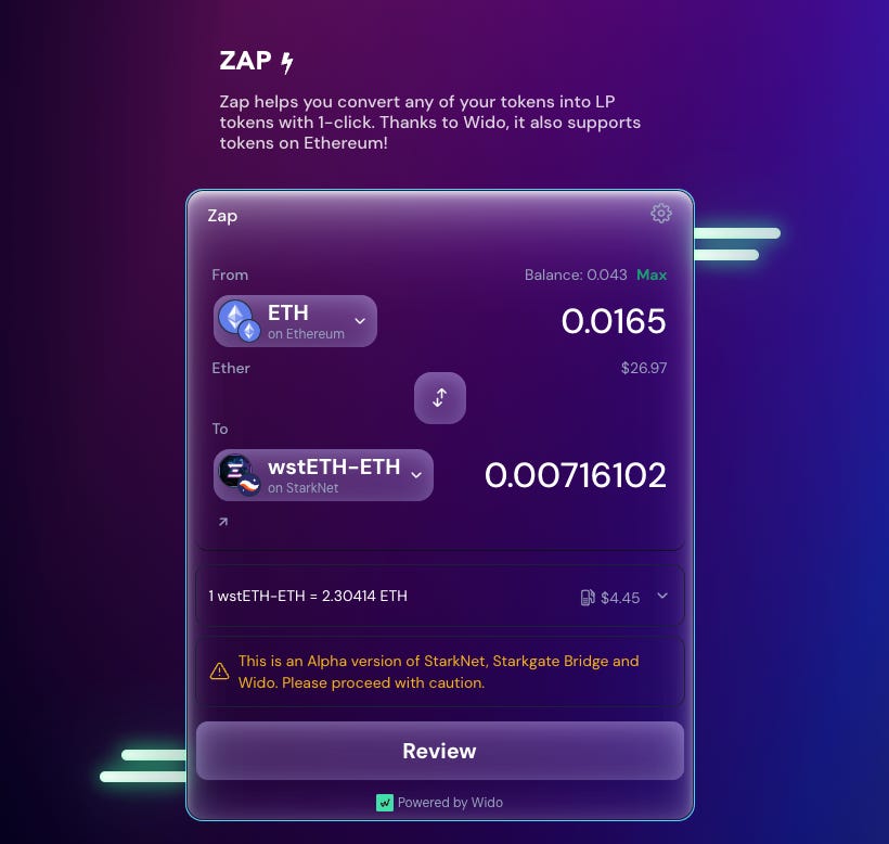 I sent ETH to the wstETH-ETH pool on StarkNET, and this cost me around $4.13 in gas when the gwei was 10.3.