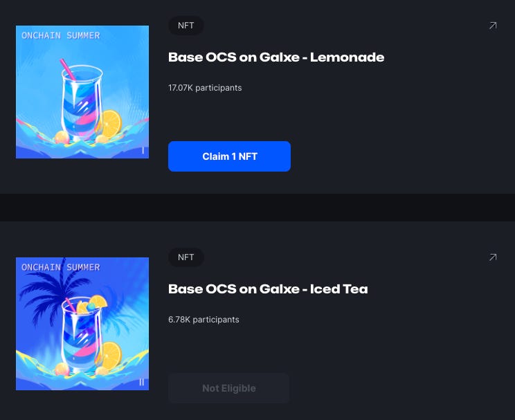 Depending on the number of points that you collected during the Onchain Summer mints, you may be eligible for one of these NFTs.