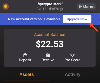 Also, don’t forget to upgrade your wallet (Braavos or Argent X), as I received this prompt.