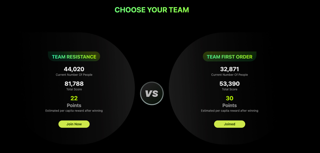 You can choose either Team Resistance or Team First Order (I chose the First Order team as there are fewer participants).