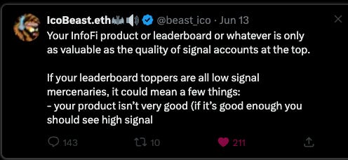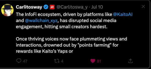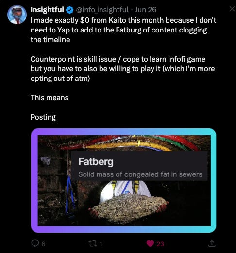 InfoFi’s problem is what kind of content it incentivises: engagement farming and slop.