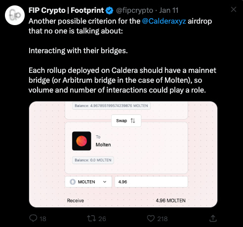 And it makes the most sense to reward protocol users that share what they did on Twitter.