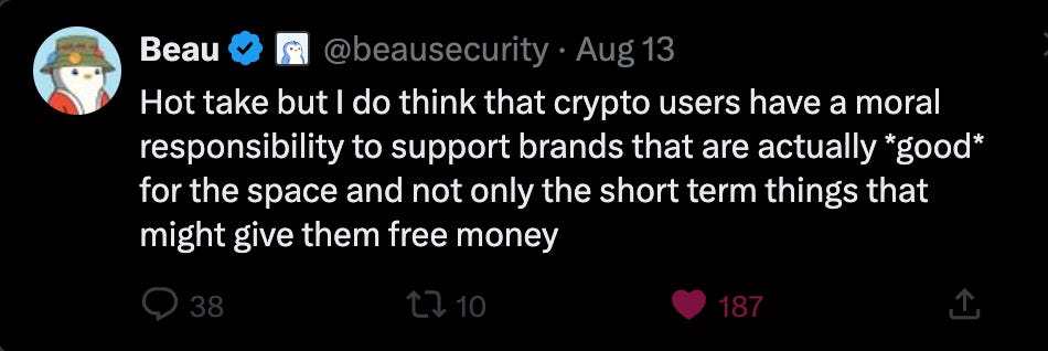 It was so hard to use Twitter a few months back because of the “IP is inevitable” nonsense with Story.