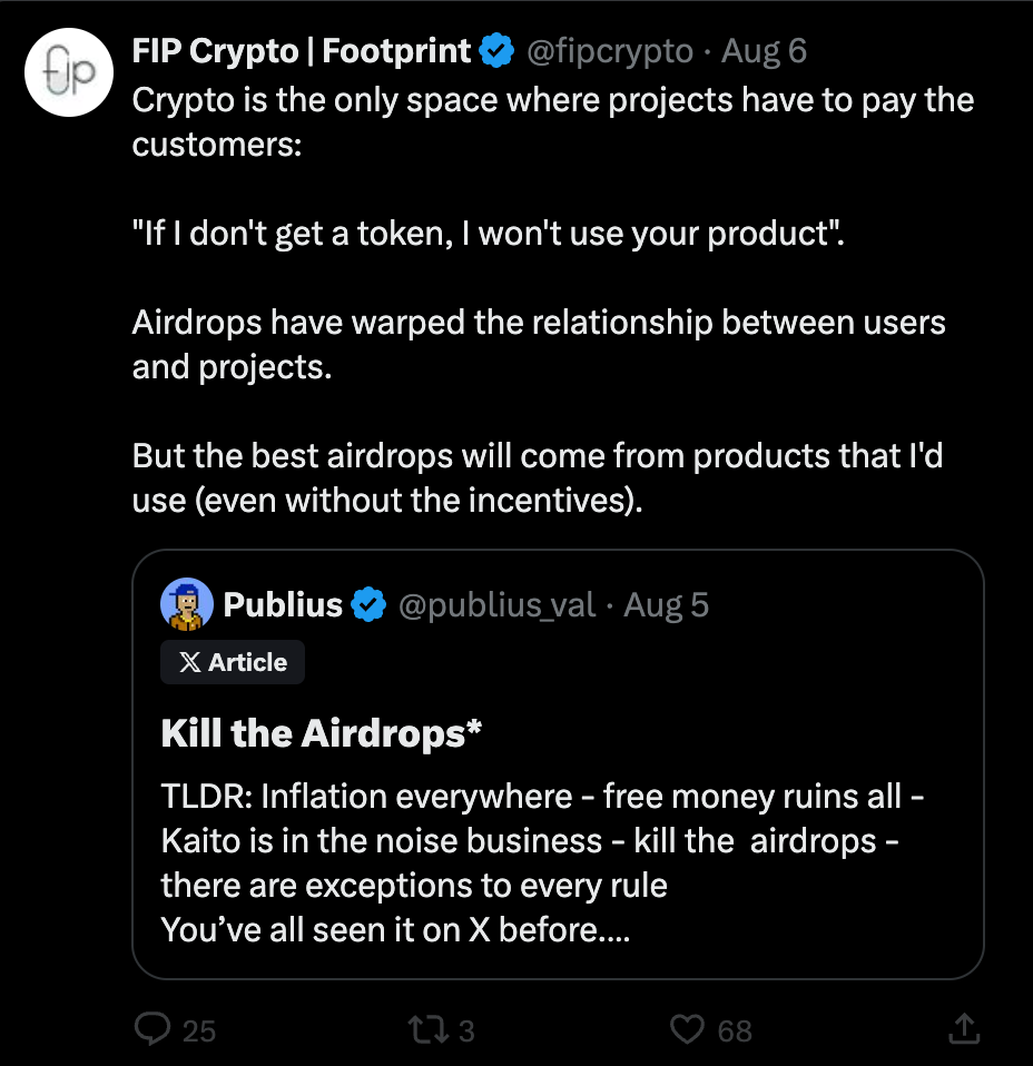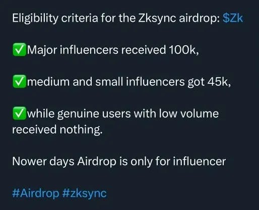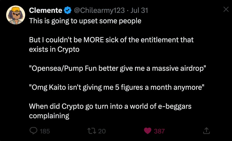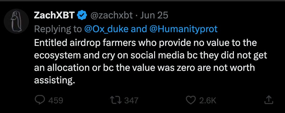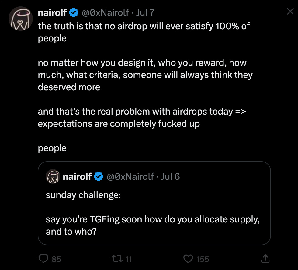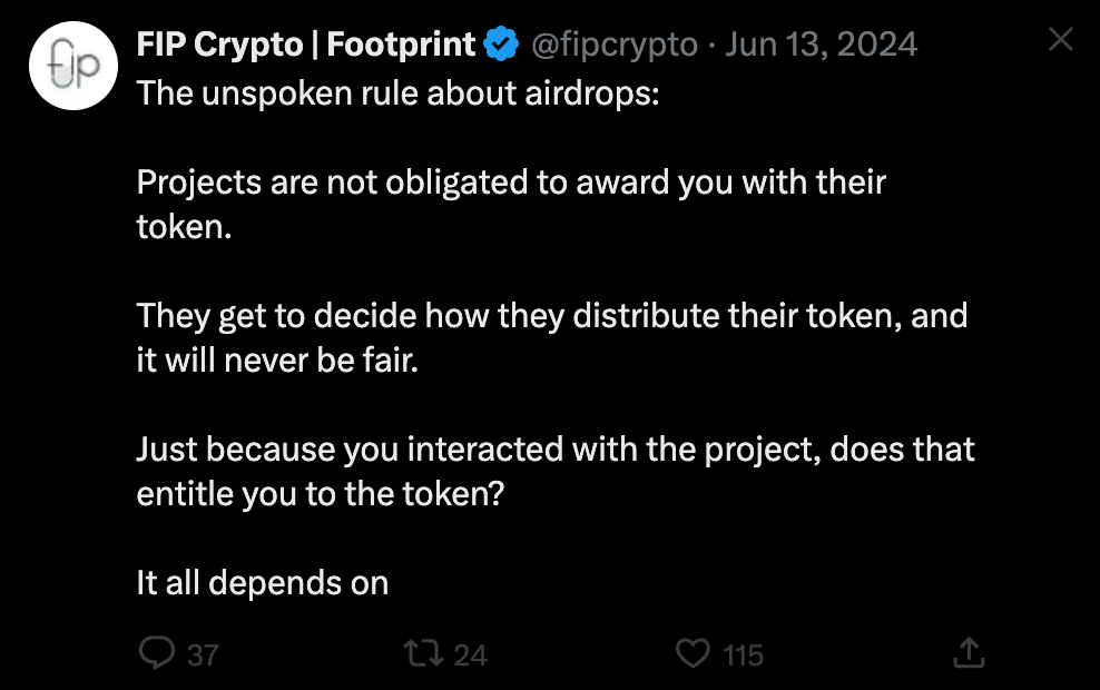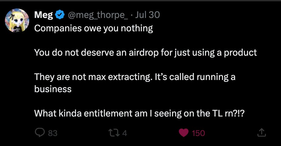 Airdrops are the only space where people get angry about free money. Some expect a 5-figure airdrop for every project they interact with, but that’s not how any of this works.