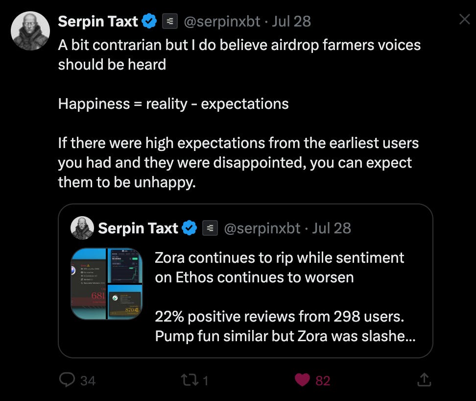 We can be disappointed with our allocation, but there’s no reason to curse at the team, no matter how bad the airdrop is.