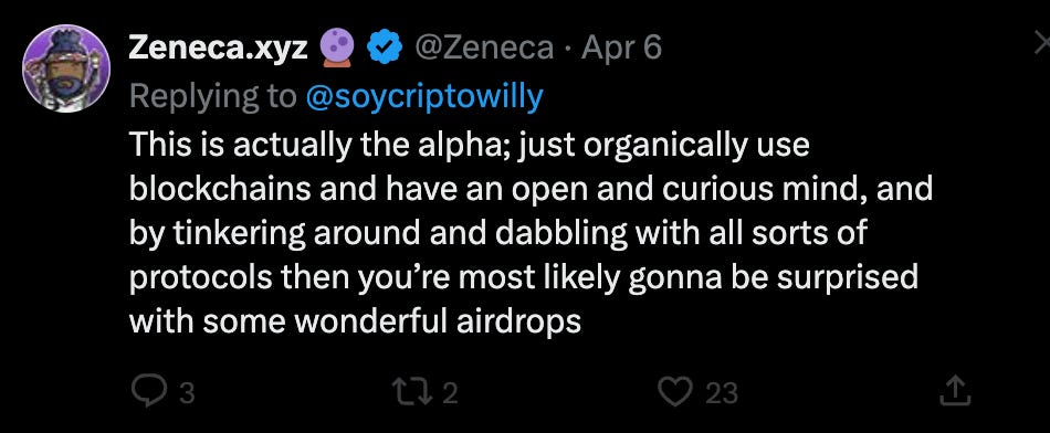 I have to make money with my DeFi interactions first, with the airdrop being extra yield.