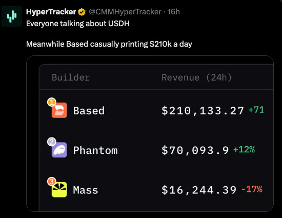 Based has overtaken Phantom in 24h revenue, which is no mean feat given they charge 50% less in Builder fees.