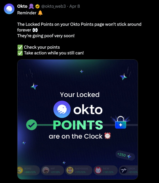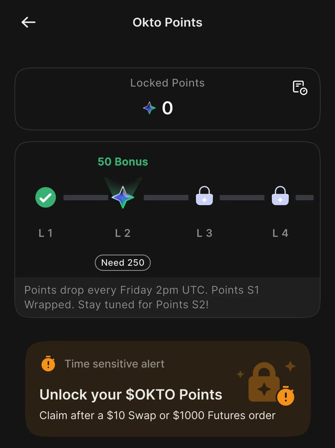 @okto_web3 ended S1 of their points, with S2 coming soon.
