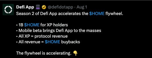 Trading on DeFi App earns XP which goes towards Season 2 of the HOME airdrop